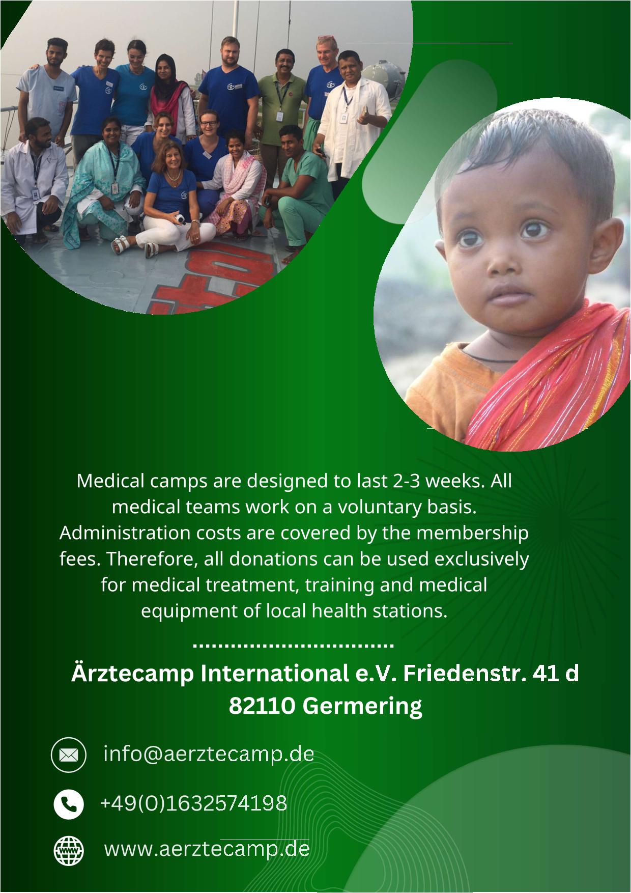 Für das Jahr 2026 steht bereits jetzt fest: Im Herbst wird Ärztecamp International erneut einen medizinischen Einsatz in Bangladesch durchführen, in bewährter Zusammenarbeit mit lokalen Partnern wie der Organisation Friendship. Zusätzlich laufen die Vorbereitungen für weitere Hilfsmissionen in Tansania und/oder Nepal auf Hochtouren. Die genauen Einsatzorte werden in den kommenden Monaten final abgestimmt, abhängig von Bedarfslage, Sicherheitslage und verfügbaren Ressourcen. Dank der treuen Unterstützung durch Spenderinnen und Spender können diese lebenswichtigen Projekte auch weiterhin realisiert werden.