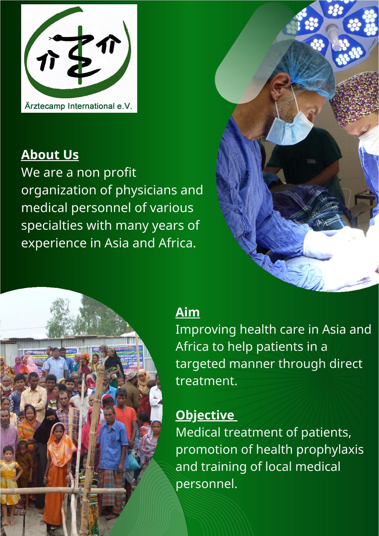 Das Ärztecamp International ist eine gemeinnützige Organisation aus Ärzten verschiedener Fachrichtungen, die auf viele Jahre erfolgreicher Tätigkeit in Ländern mit unzureichender medizinischer Versorgung zurückblicken können.